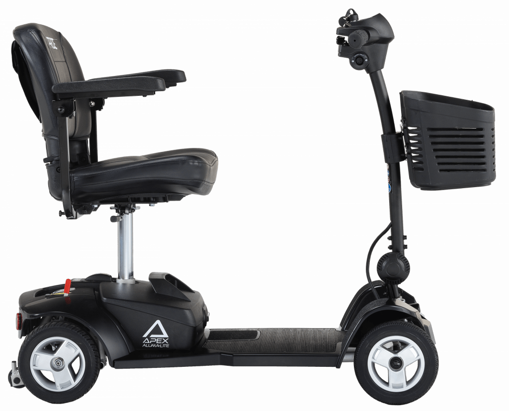 Experience the convenience of a lightweight, compact travel scooter. Easy to put into the boot of your car, with its heaviest part weighing only 11.2 kg. The Apex Alumalite, with its aluminium frame, weighs only 28.8 kg, making it one of the lightest four-wheeled scooter yet!